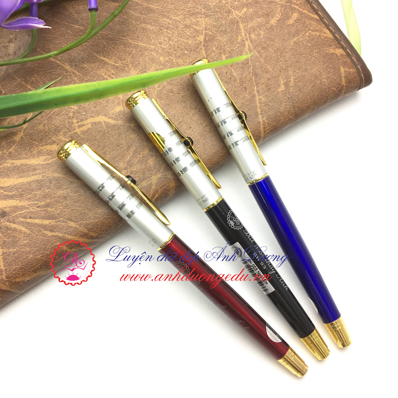 Bút có 3 màu: xanh, đỏ, đen