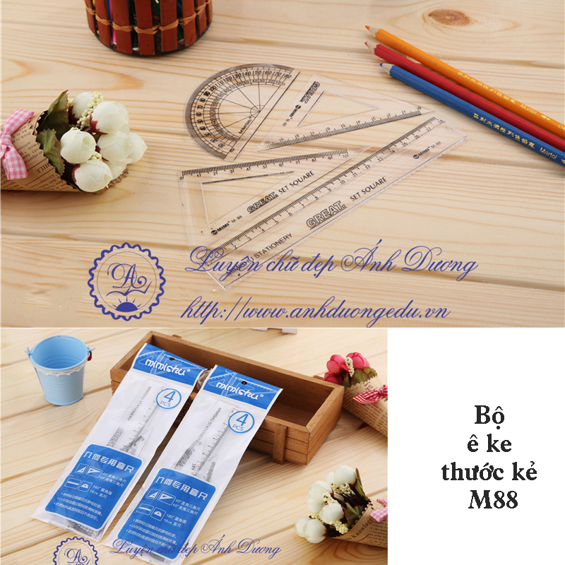 Bộ e kê thước kẻ M88 - 1 loại đồ dùng thiết yếu không thể thiếu trong cặp sách của mỗi bạn học sinh khi tới trường