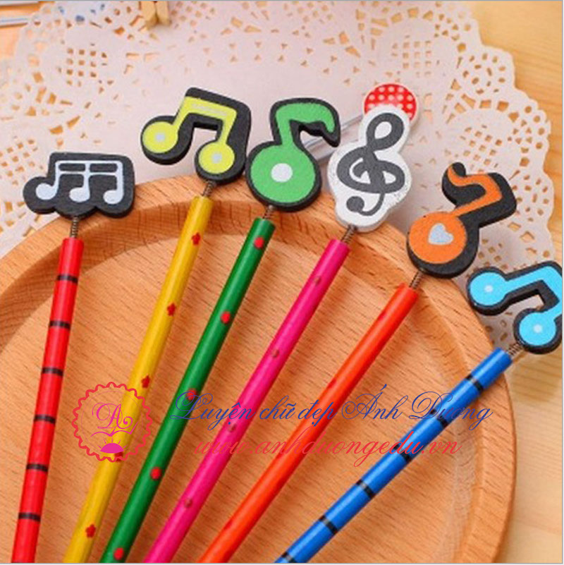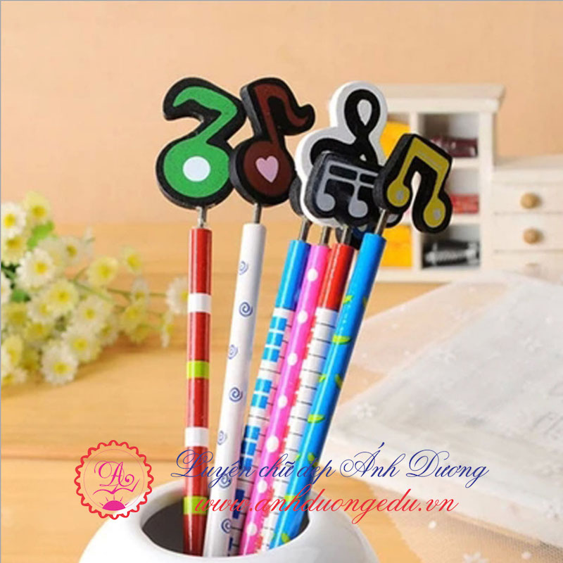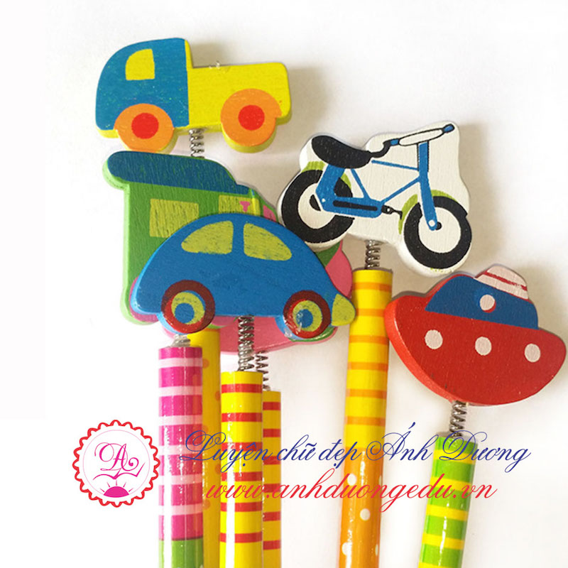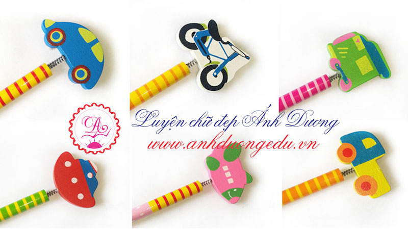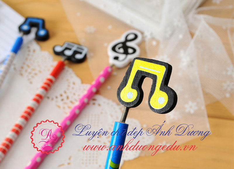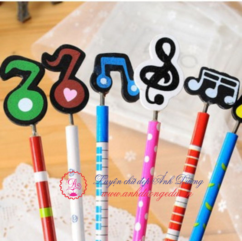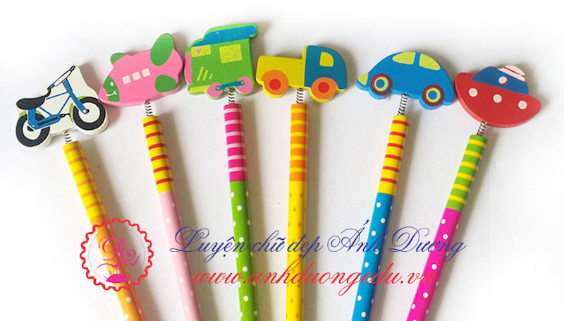 - Bút chì đầu được gắn các hình ngộ nghĩnh: nốt nhạc, phương tiện giao thông ...