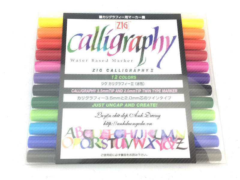 - Bút gothic Zig với đầu lông dầu được thiết kế 2 đầu trong 1 bút: 1 đầu 2.0mm 1 đầu 3.5mm cho bạn thoải mái với các lựa chọn để sử dụng có thể dùng viết tiêu đề, ghi nhật kí trên các trang sổ lưu bút hoặc ngay cả trang trí các hình hoa lá hoạ tiết phức tạp