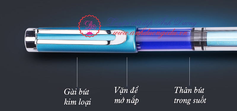- Thân bút trong suốt nên nhìn thấy lượng mực đang ở vị trí nào để có thể bơm thêm mực khi cần, nhìn rõ màu mực mình đang viết để lựa chọn cây bút nào cần