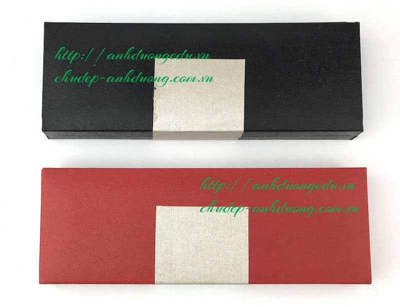 - Mỗi hộp được dán can màu sữa ở giữa và có 2 màu đỏ đen để lựa chọn