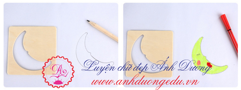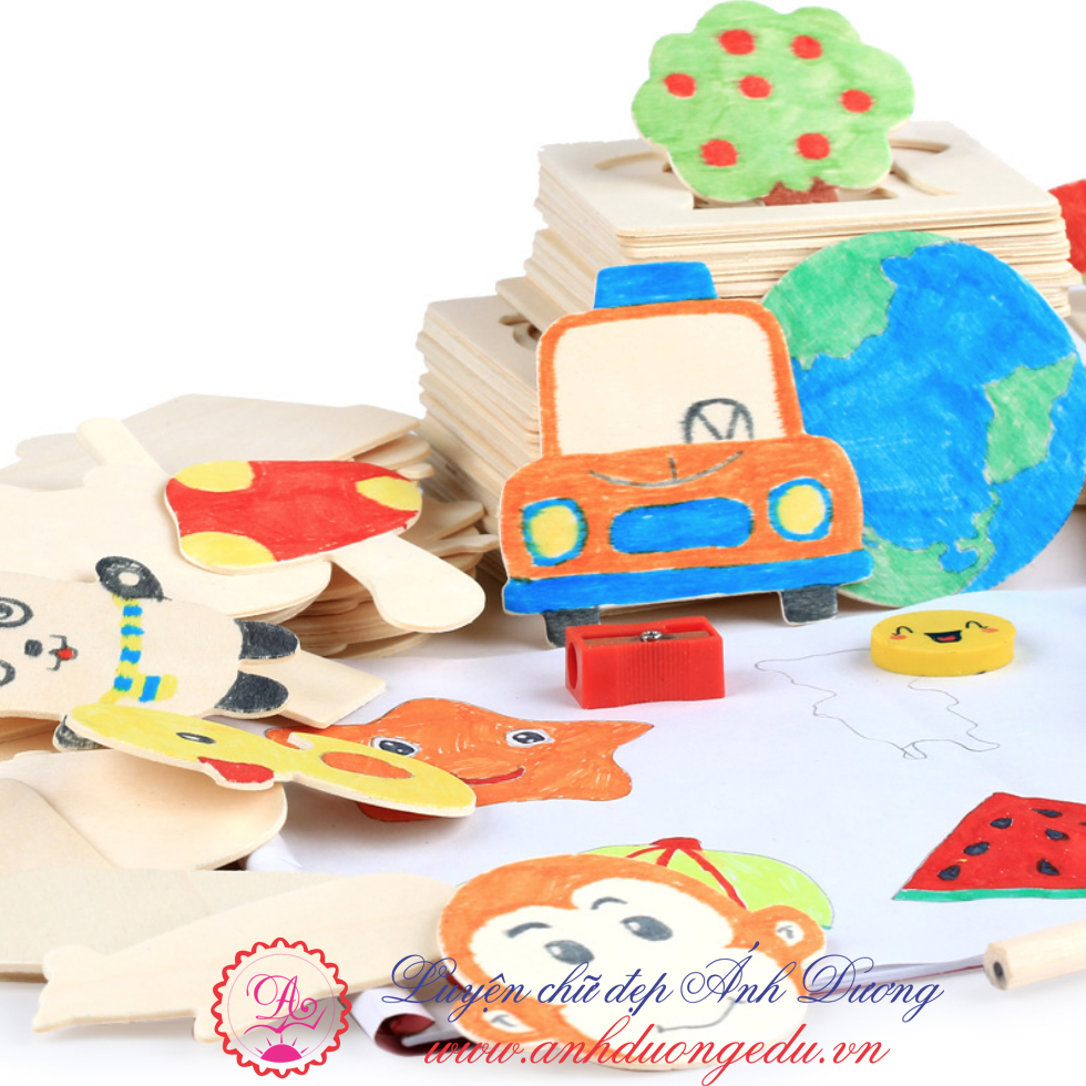 Cách sử dụng: Dùng 1 khuôn và vẽ bằng bút chì để tạo hình lên giấy, tô màu theo ý thích, trang trí thêm để ghép thành bức tranh