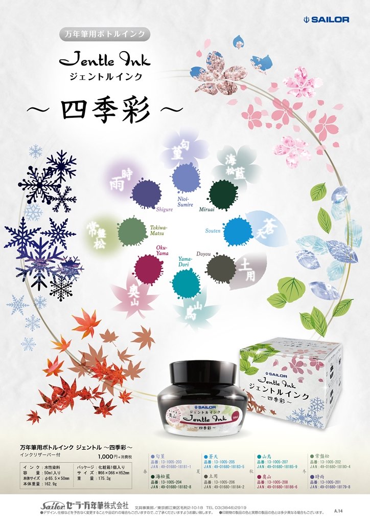- Mực Sailor Jentle (Thủy thủ) được lấy cảm hứng từ thiên nhiên 4 mùa xinh đẹp của Nhật Bản.