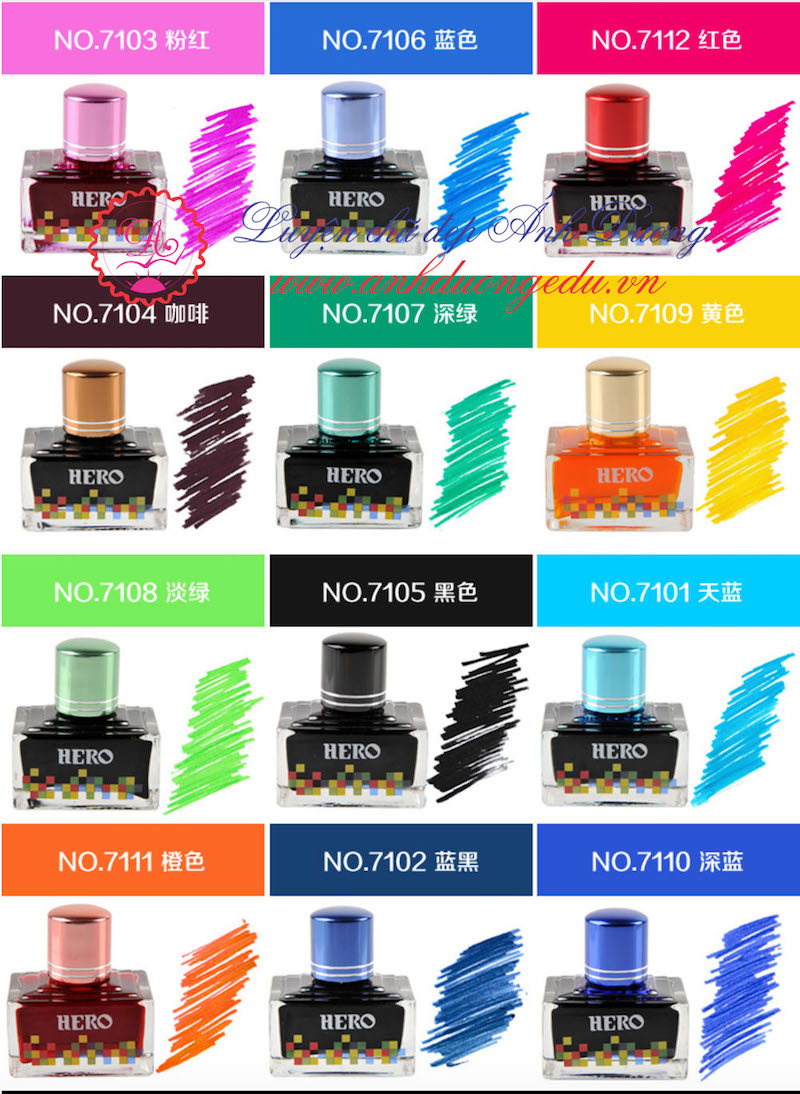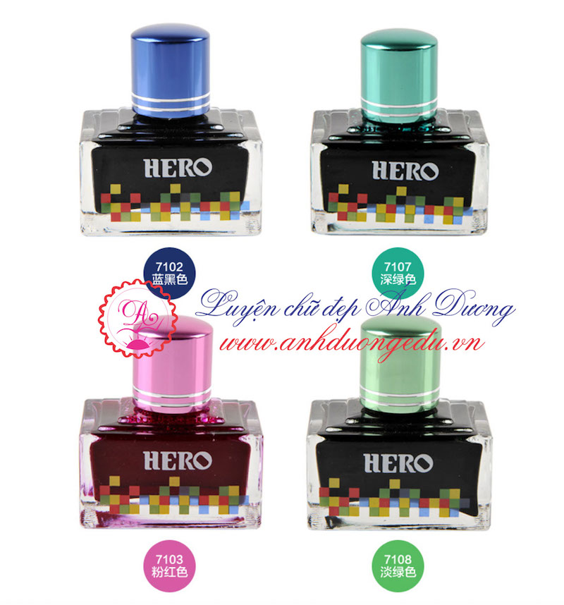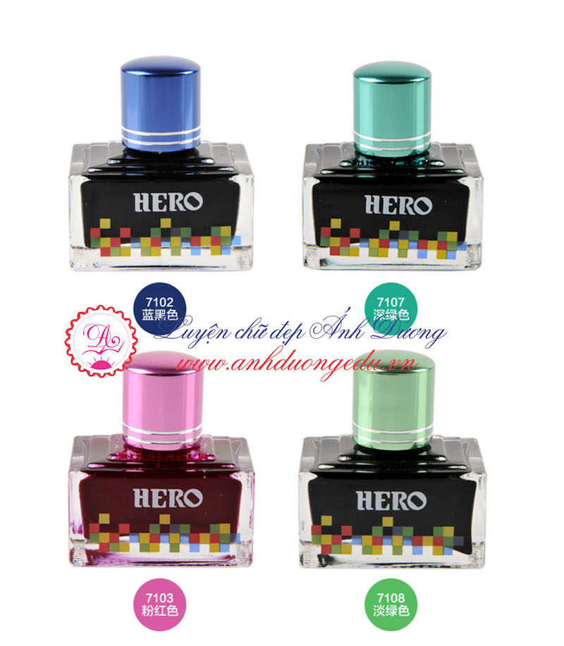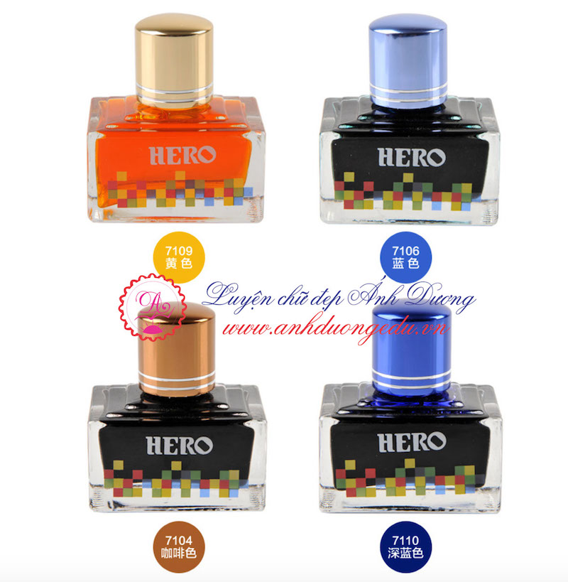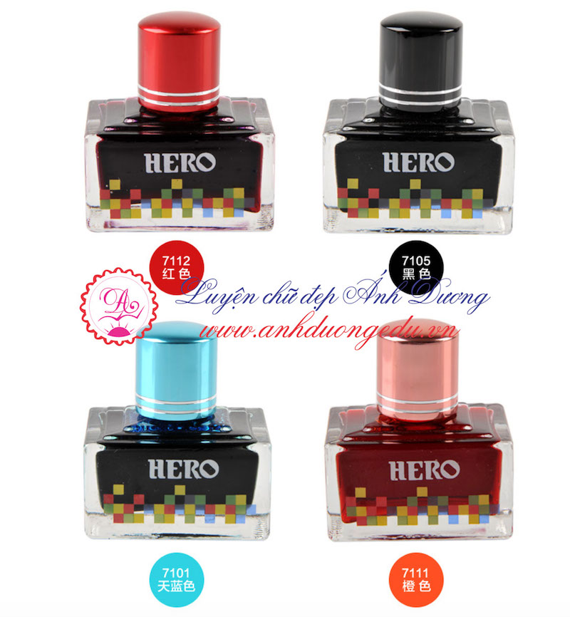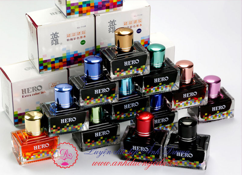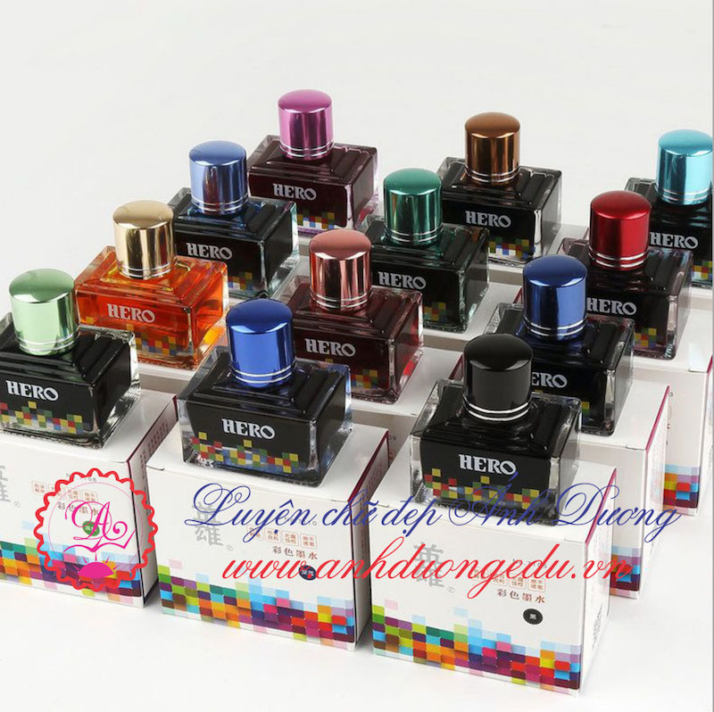 Mực viết máy Hero 40ml không chứa các bon với 12 màu sắc thiên nhiên tươi sáng dùng được cho nhiều loại bút chắc chắn sẽ là lựa chọn không thể thiếu cho những tín đồ yêu chữ