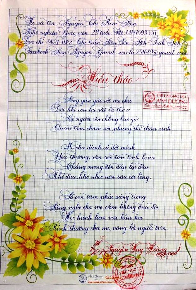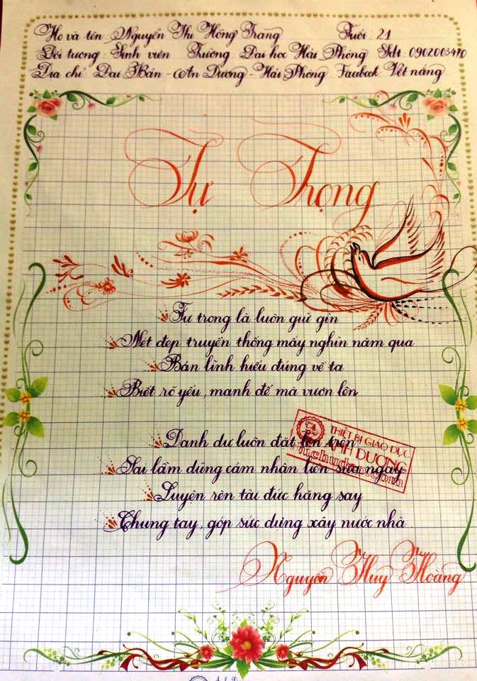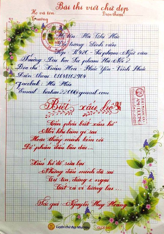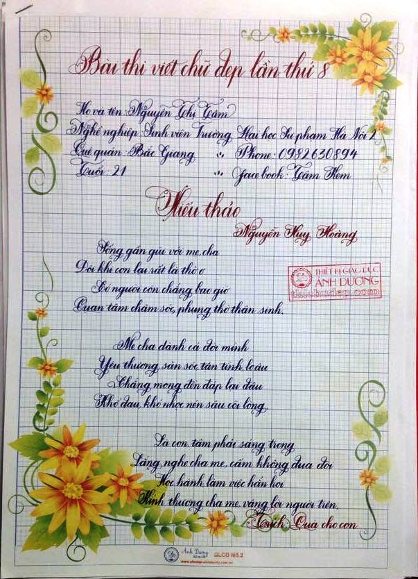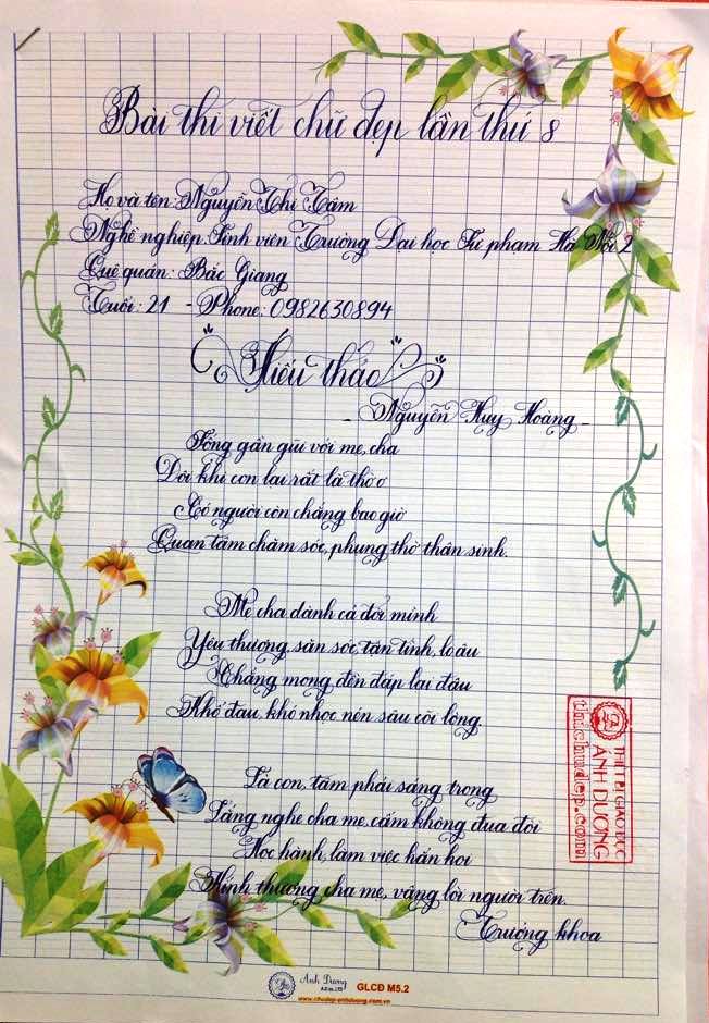 Tập hợp toàn bộ bài thi viết chữ đẹp lần 8 của Giáo viên và sinh viên sư phạm