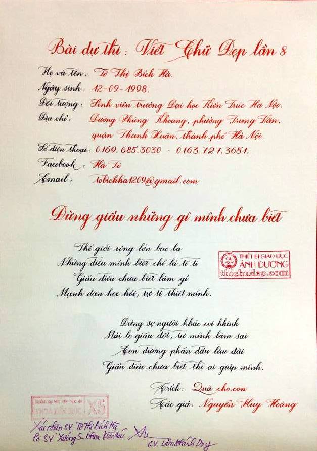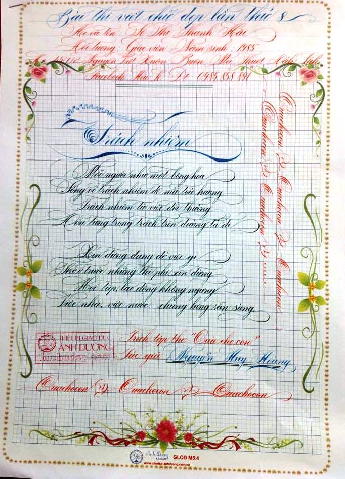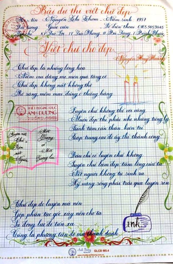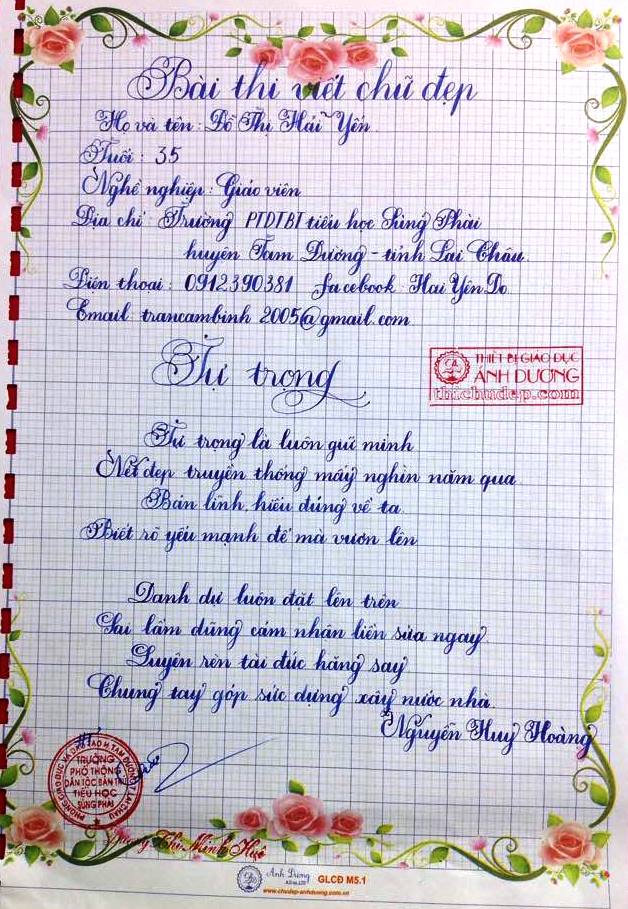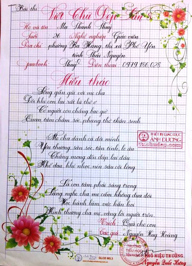 Thi chữ đẹp lần 8 - Bài thi Giáo viên và sinh viên sư phạm