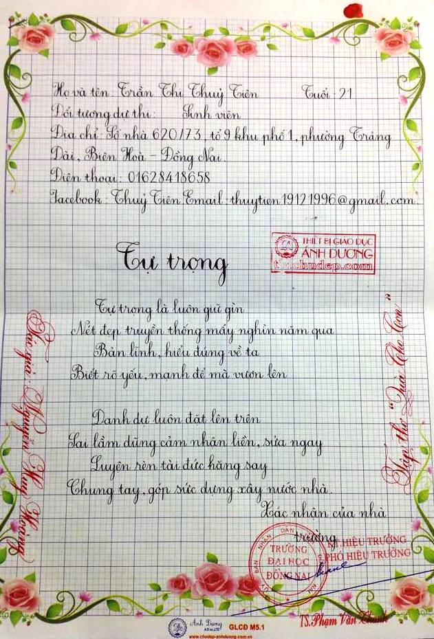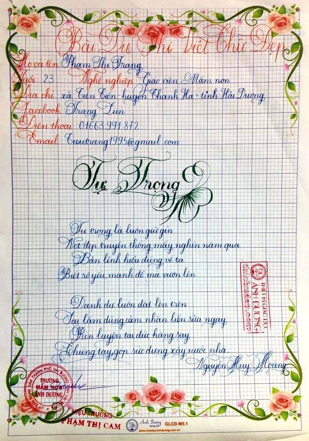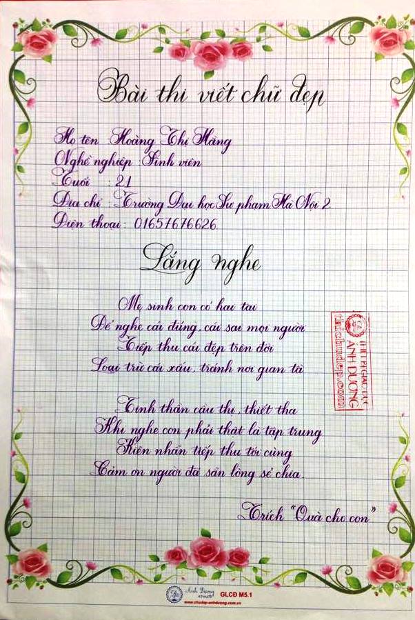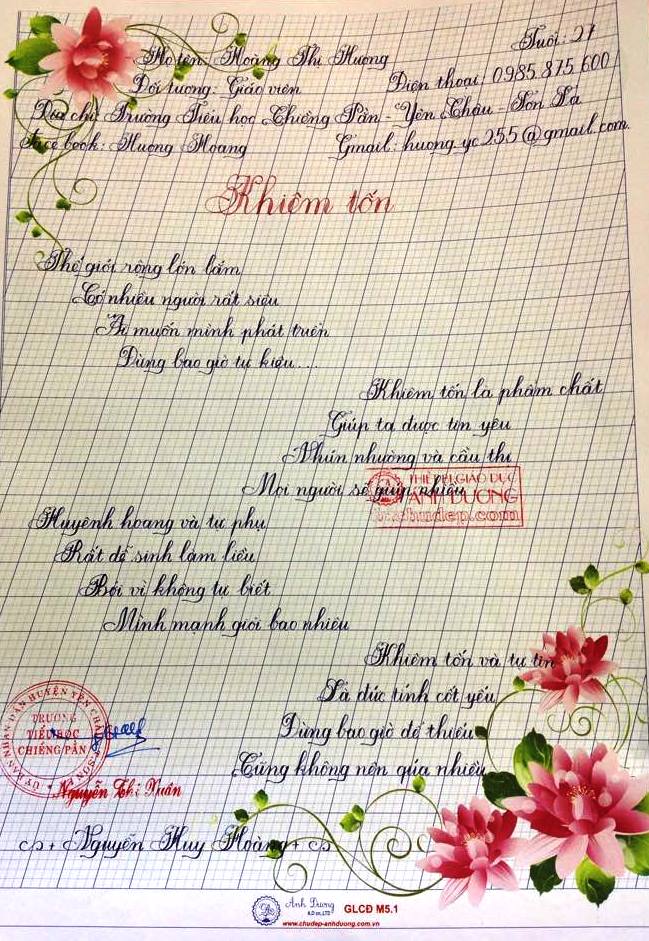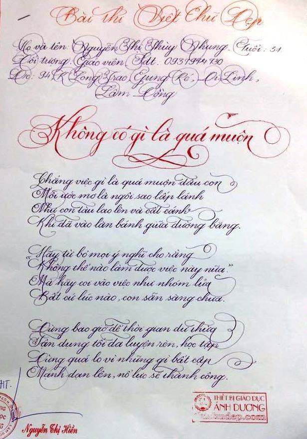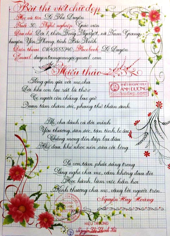 Thi chữ đẹp lần 8 - Bài thi Giáo viên và sinh viên sư phạm