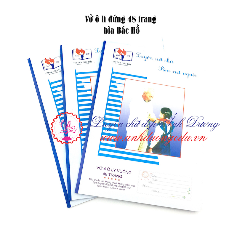 + Vở 4 ô li vuông, bìa Bác Hồ màu xanh